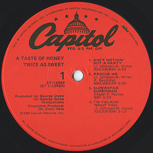 George Dukeがプロデュースを担当した80年リリースアルバム。 US12inchはプロモオンリーでレアなダンスクラシックス「Rescue Me」をはじめ、洗練されたファンクネスが昇華したディスコファンク「I'm Talkin' 'Bout You」、メロウダンサーB4「Say That You'll Stay」、坂本九さんのカバー「Sukiyaki」などナイストラック満載です!!