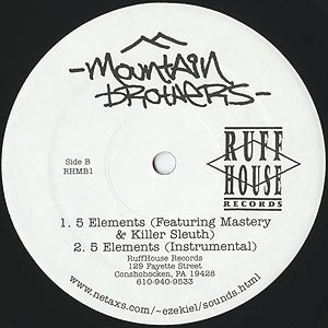 Styles、Peril-L、Chopsから成るフィラデルフィアのヒップホップトリオMountain Brothersのファーストアルバム「Self: Volume 1」からの先行カットシングル。浮遊感のある心地良いループにハメられる「Paperchase」、MasteryとKiller Sleuthをフューチャリング、デトロイトっぽい雰囲気を感じるシンプルなループが好印象な「5 Elements」共に格好良いダブルサイダー盤!!