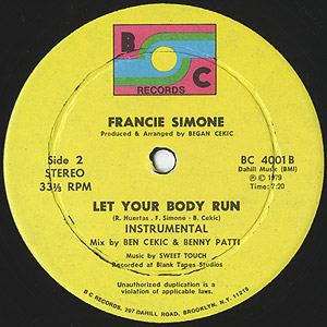 疾走感に溢れたトラック、パーカッションがうち乱れるブレイク等、とにかくアップリフティングな曲調が格好良いグレイトディスコトラック!!良作が多いブルックリンのスモールレーベルBCの第1弾となった12inch。カップリングはインストでこちらも使えます!!