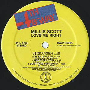 Ortheia BarnesとのデュオCut Glassでのリリースも知られる女性シンガーMillie Scottの87年リリースレコード。