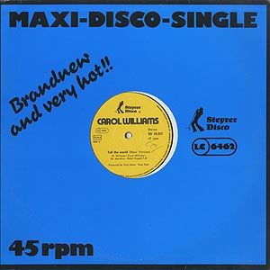 女性ヴォーカルトリオThe Geminiesでキャリアをスタート、ソロとなりSalsoulからの「Love Is You」のヒットなどで知られるシンガーソングライターCarol Williamsの80年リリースレコード。Tony Valorがプロデュース。グイグイと攻めるベースプレイを軸としたアップリフティングなグルーヴと可憐なヴォーカルがバッチリとハマったナイスディスコ!!ファンキーな「Take Your Time」も格好良いです!!確かドイツオンリーのリリースだったと思います。