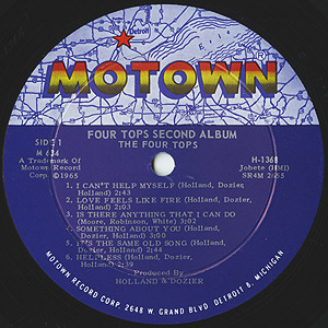 Lawrence Payton、Levi Stubbs、Abdul Duke Fakir、Renaldo Bensonから成るヴォーカルグループThe Four Topsの65年リリースレコード。セカンドアルバム。NottzがMurs「Better Than The Best」でサンプリングしたA1「I Can't Help Myself」をはじめ、A4「Something About You」、A5「It's The Same Old Song」などHolland & Dozierプロデュースの溌剌としたリズムが好印象なナイスソウルが満載です!!