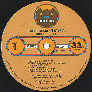 フィラデルフィアはアッパーダービー出身のシンガーソングライターTodd Rundgren率いるグループUtopiaのライブ録音盤。プログレッシブなA1「Another Life」、メロウなA2「The Wheel」がおすすめです!!