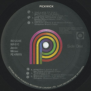 名レゲエオルガンプレイヤーJackie Mittooのカナダ録音の72年発表作。こちらは80年にPickwickからリリースされた再発盤。Cornelius Brothers & Sister Roseのカバー「Too Late To Turn Back Now」は、ドラムブレイクで始まるグレイトカバー!!ファンキーレゲエA6「Wintergreen」も格好良いです!!