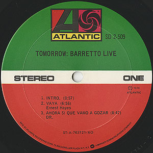 Faniaレーベルでの活躍も知られる名パーカッショニストRay Barrettoが、ニューヨークのBeacon Theatreで行ったライブ録音盤。終盤のドラムブレイクがB-Boyに大人気のA2「Vaya」や、打っているドラムとホーンの重厚なリフが格好良いC1-b「Slo Flo」といったキラーなラテンレアグルーヴを収録!!「Vaya」のブレイクは、DJ Tus-Oneさんのミックス「Sure Shot 2」に収録されていました。