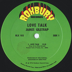 Boz Scaggs「Lowdown」等、色々なセッションに参加した事でも知られるピッツバーグ出身のソウルシンガーJames Gilstrap(Jim Gilstrap)の76年発表アルバム。 Wes Farrellがプロデュースを、Gene Pageがアレンジを担当。 B1「Move Me」はBig L「Flamboyant」でサンプリングされていた激渋ソウル!! 片面丸々を使ったグルーヴィーソウル「Love Talk」も良いです。