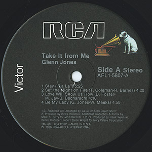 フロリダ出身、「I Am Somebody」などの名曲で知られるシンガーGlenn Jonesの86年リリースレコード。 サードアルバム。Knxwledge.「Songkry」などでサンプリングされたアーバンメロウダンサーA1「Stay」、スロウB1「Giving Myself To You」がおすすめです!!