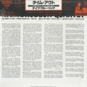 盟友Paul Desmond作、ジャンルを超えて数多くのアーティストがカバーした大名曲「Take Five」をはじめ、Brubeckのオリジナルで変拍子風のA1「Blue Rondo A La Turk」などを収録したジャズ名盤!!