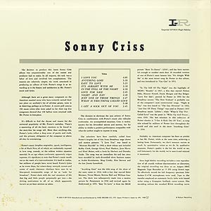 西海岸を代表するアルトサックス奏者Sonny Crissの56年発表アルバム。こちらは83年リリースの日本盤。