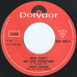 Gladesレーベルを中心に活躍したインディアナ出身のシンガーソングライターTimmy Thomas。こちらは72年発表アルバムからのシングルカット。