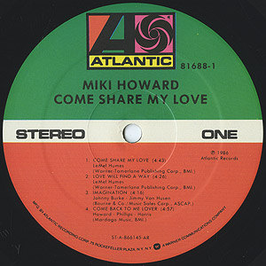 両親がゴスペルシンガーという音楽一家に生まれたシンガーMiki Howardのソロデビューアルバム。 アーバンダンサー「Come Back To Me Lover」、プロデューサーLe Mel Humesとのデュエット曲「I Can't Wait」、エレクトロブギーなB4「Do You Want My Love」やB2「I Surrender」などナイストラックを収録。