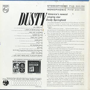 The SpringfieldsのリードシンガーMary O'BrienことDusty Springfieldの64年発表アルバム。 サンプリングに向きそうな激渋グルーヴで幕を開けるA6「Guess Who?」や「Summer Is Over」、Marvin Gayeのカバー「Can I Get A Witness」やB1「Live It Up」辺りのノーザントラックなどナイストラック満載です。