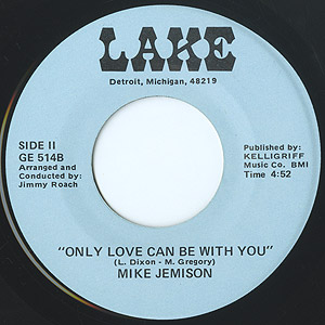 Johnny GriffithのレーベルGenevaからの作品でも知られるデトロイトのシンガーMike Jemisonが地元レーベルLakeに残したシングル。 滑らかな高揚感が心地良いモダンソウル「You'll Never Get My Love」、スウィート「Only Love Can Be With You」ともにLarry Dixonのペンによるナイスチューン!!