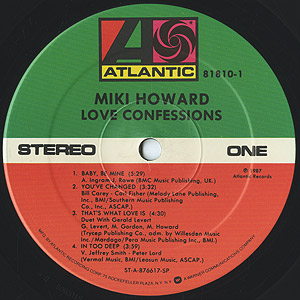 ゴスペルシンガーを両親に持つシカゴ出身のシンガーMiki Howardのセカンドアルバム。 Gerald Levertとのデュエット曲「That's What Love Is」、B1「Crazy」、冒頭を飾ったNick Martinelliプロデュースのバラード「Baby, Be Mine」、Arif MardinプロデュースのメロウフローターA2「You've Changed」、A4「In To Deep」などナイストラック満載です。