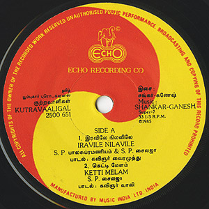 Shankar-Ganeshが音楽を手掛けたインド映画「Kutravaaligal」のサウンドトラック。 一際ファンキーなS.P. Sailajaが歌う「Ketti Melam」がおすすめです!!