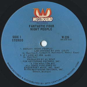 James Epps、Joseph Pruitt、Cleveland Horne、Paul Scottから成るデトロイトのヴォーカルグループFantastic Fourの76年発表アルバム。 ディープ/メロウ「They Took The Show On The Road」、中盤にディスコブレイクスがあるA1「Medley」とB3「Don't Risk Your Happiness On Foolishness」、フィリータイプの「Hideaway」などを収録。