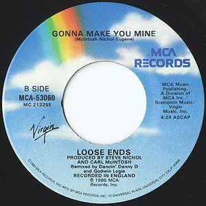 Carl McIntosh、Jane Eugene、Steve Nicholから成るロンドンのグループLoose Endsの86年発表シングル。 「You Can't Stop The Rain」はCurren$y & LNDN DRGS「Ghetto Gospel」でサンプリングされた傑作アーバンメロウ!! 裏の「Gonna Make You Mine」も良いです。