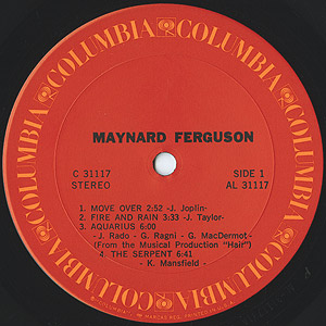 ロッキーのテーマでも知られるモントリオール出身のジャズトランペッターMaynard Fergusonの71年発表アルバム。