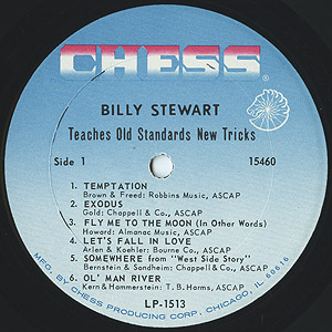 歌に、作詞作曲、ドラム、鍵盤と多彩な才能を発揮したワシントンDC出身のミュージシャンBilly Stewartの67年リリースレコード。 ブレイクで幕を開けるB1「Every Day I Have The Blues」をはじめ、A1「Temptation」、A6「Ol' Man River」、B3「Moonlight In Vermont」など往年のスタンダード名曲を格好良いアレンジでカバー!! モノ盤 Mono
