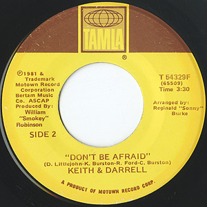 Darrell LittlejohnとKeith Burstonのデュオのデビューシングル。 後にセルフカバーをするSide-B「The Things You're Made Of」はサビの高揚感がクセになるグレイトメロウソウル!! 軽快な「Feel The Fever」ともに叔父のSmokey Robinsonプロデュース。