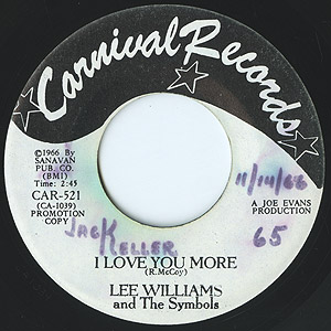 スウィートソウルファンから絶大な支持を受けるLee Williams率いるグループThe Cymbolsの記念すべきデビューシングル。