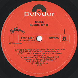 アメリカ出身、ヨーロッパで活躍したシンガーRonnie Jonesの80年発表アルバム。 Chic「Good Times」とMcFadden & Whitehead「Ain't No Stopping Us Now」を引用したディスコラップ佳曲「Cosmo Rap」、テレビゲームを題材にしたコミカルな「Video Games」のディスコトラック2曲がおすすめです。 当時のカナダ盤