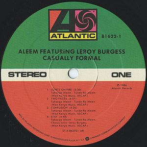 Fantastic AleemsからAleemに改名しAtlanticから発表した86年作。キャリア1枚目のアルバム。 「Fine Young Tender」、「More Than A Million」、「Two Faces」辺りのブギートラックから、エレクトリックな「Love's On Fire」、「Dance To The Groove」、メロウ「Think」、「Stay」など、Leroy Burgessの存在感抜群のヴォーカルと洗練されたメロディーが融合したナイストラック満載。