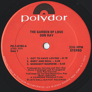 ドイツ生まれのフランス育ちのディスコプロデューサーDon Rayの78年リリースレコード。 12inchがプロモオンリーでレアなB1「Standing In The Rain」、A1「Got to Have Loving」はガラージクラシックスとしても名高い名曲!! 爽やかなダンスクラシックスB2「The Garden of Love」も素晴らしく、アルバム通して充実した内容となっています!!