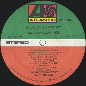 Geoff Deaneを中心に結成されたイギリスのバンドModern Romanceが82年に放ったファンカラティーナクラシック!!12inchにはRichie Riveraによる、中盤からの展開も渋いロングバージョンを収録!!b/w「Ay Ay Ay Ay Moosey」。