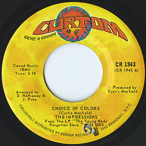 Donny HathawayとJohnny Pateが参加した名盤「The Young Mods Forgotten Story」からのシングルカット。 Baby Huey「Mighty Mighty Children」もカバーしたCurtis Mayfield作のシカゴソウル名曲!! 裏面のメロウ「Choice Of Colors」もナイス!! DJに人気のヴァイナルプレス。