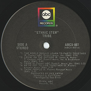 Earl Jefferson Foster Jr.を中心とするバンドTribeのファーストアルバム。ガラージ/ロフトクラシックとして名高いB5「Smoke Part.1」をはじめ、中盤にブレイクが入るA3「Tribe」、うねるベースラインが印象的なA5「Think People」といったナイストラックを収録!!