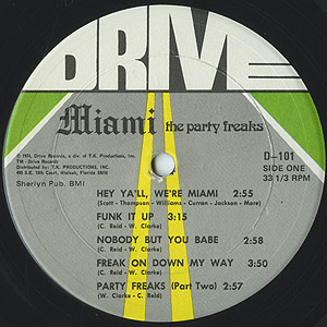 「Ultimate Breaks & Beats」にも収録され、Showbiz & A.G.「Soul Clap」等でサンプリングされたファンク名曲B4「Chicken Yellow」を筆頭に、「Shaft」をマイアミ風にしたようなグルーヴィーファンクB1「Party Freaks」、Clarence Reidのカバー「Nobody But You Babe」、B2「I Can See Through You」等ナイストラック満載です!!