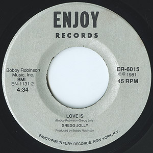マイナーシンガーGregg Jollyの81年リリースシングル。レーベルオーナーBobby Robinsonとの合作となるSide-B「Love Is」はWillie Mitchell-Al Greenワークを思わせるリズムが格好良いナイスモダンサザンソウル!!