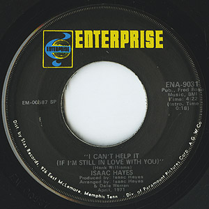 数々の名曲を生み出した名シンガーソングライターIsaac Hayesの71年リリースシングル。艶やかなヴォーカルでカバーしたJackson5「Never Can Say Goodbye」、Hank Williamsのカバーとなるディープ/スウィート「I Can't Help It」共にナイスです!!