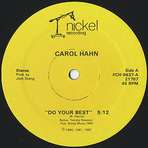 コネチカットを中心に活躍したマイナー女性シンガーCarol Hahnの82年リリースアルバム「Portraits」からのカットシングル。ありそうであまり無いタイプの独特なグルーヴが癖になるA1「Do Your Best」はMuroさんのミックス「Elegant Funk 2」にも収録された隠れた名曲!!Bill Withers「Use Me」のカバーもナイスです!!