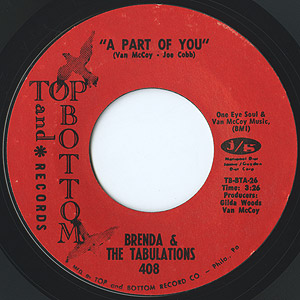 名盤「Dry Your Eyes」で知られるフィラデルフィアのグループBrenda & The Tabulationsの71年リリースシングル。「A Part Of You」、「Where There's A Will」ともにVan McCoy & Joe Cobbのペンによるナイスクロスオーバーソウル!!